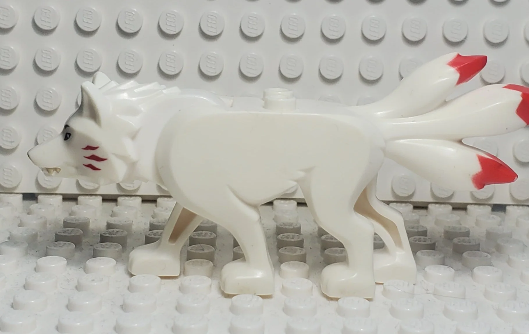 Wolf with Black Eyes and Nose, Tan Teeth, and Red Tips on Three Tails Pattern (Ninjago Akita)